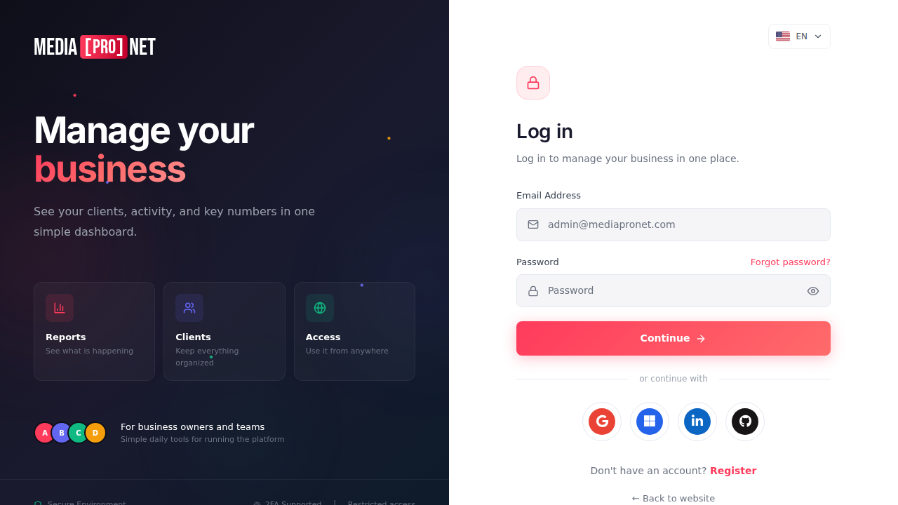 MediaProNet - Platform Website